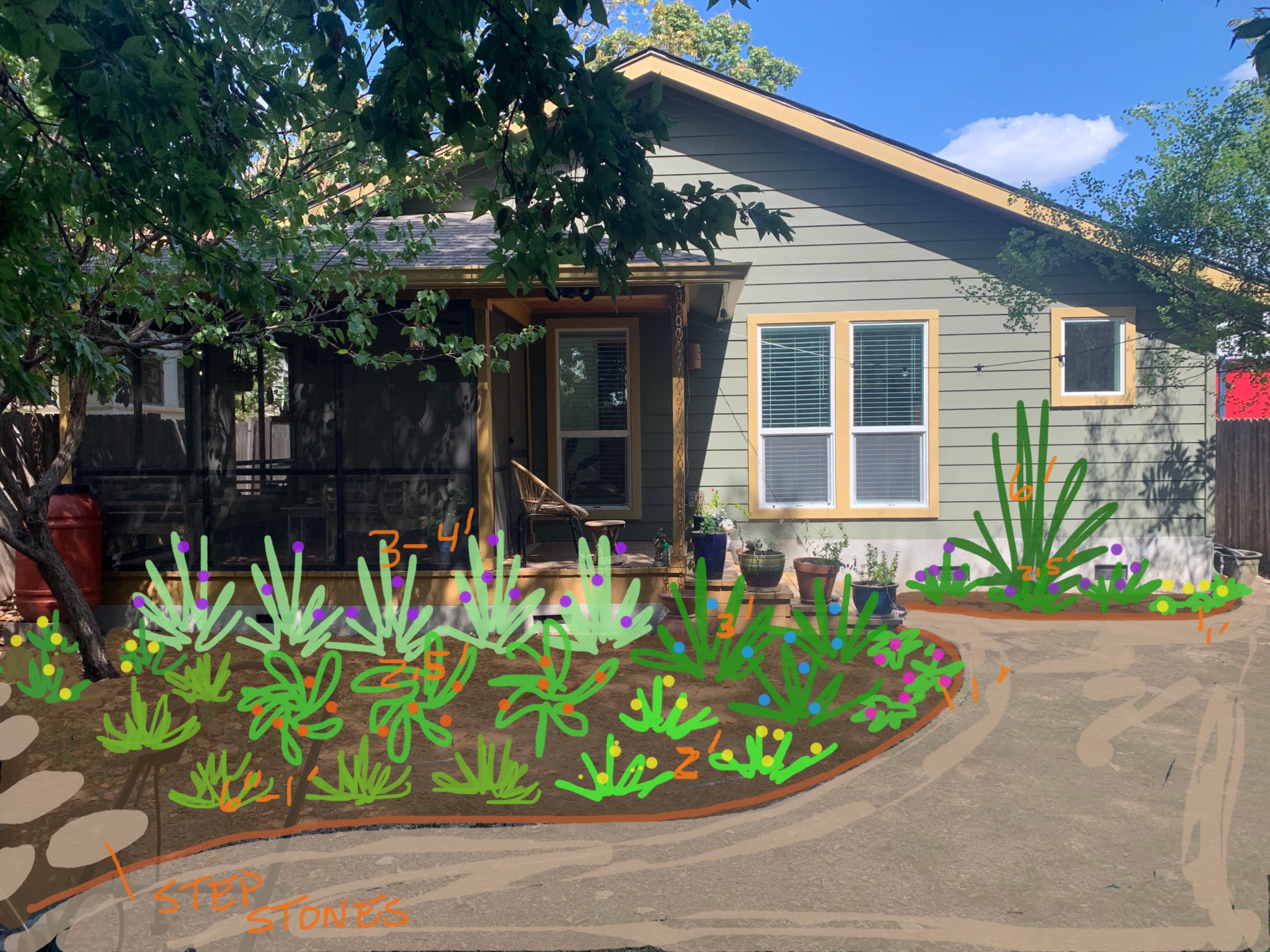 Create a quick sketch or hire someone like me to set you in the right direction. Be sure to leave plenty of room planting beds and space correctly for each plant to grow to maturity.