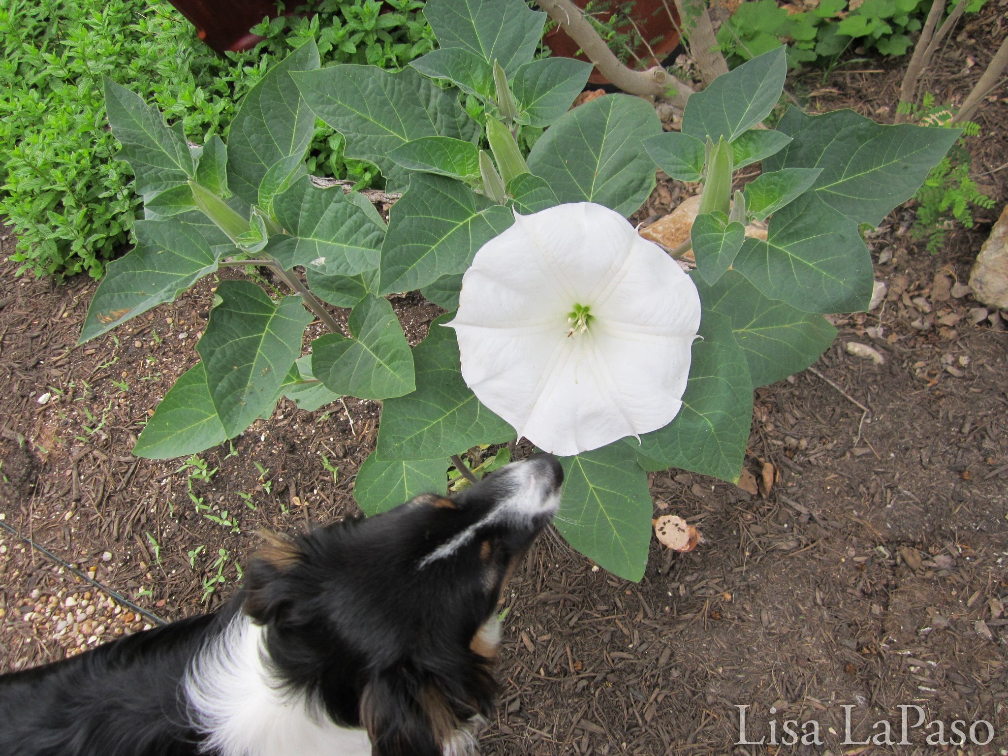 Moon flower seeds are excellent gifts. Each spikey lunar looking seed pod contains potentially dozens of new plants. This little baby below planted itself in just the right place. Moonflower Datura or Jimsonweed is a beautiful, low water plant for Central Texas and provides striking white flowers all summer long.