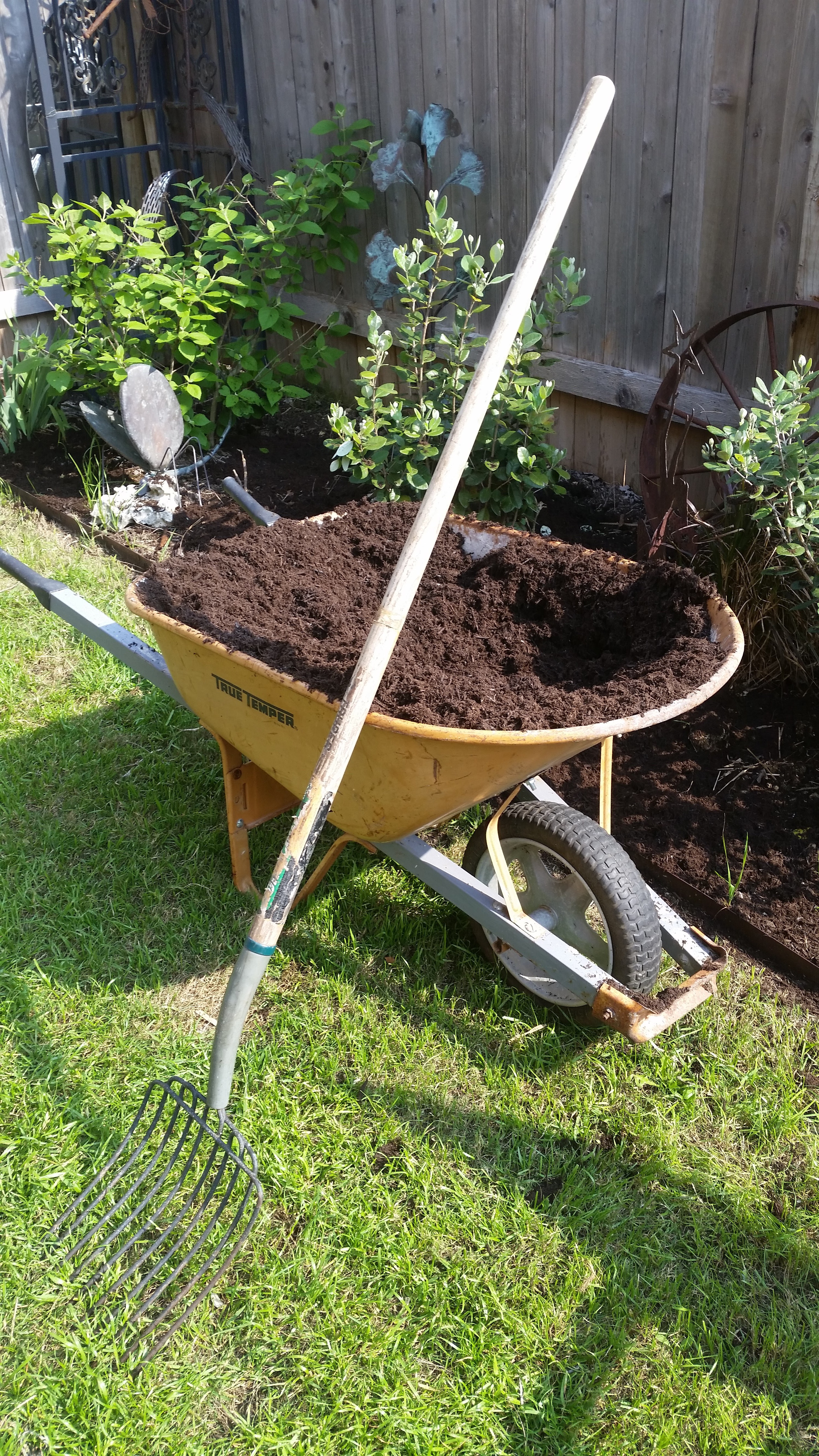 Compost your beds each spring 1 to 2 inches and compost your entire lawn and trees 1/4 to 1/2 inch. Use the compost to fill in ruts and bald spots as well.