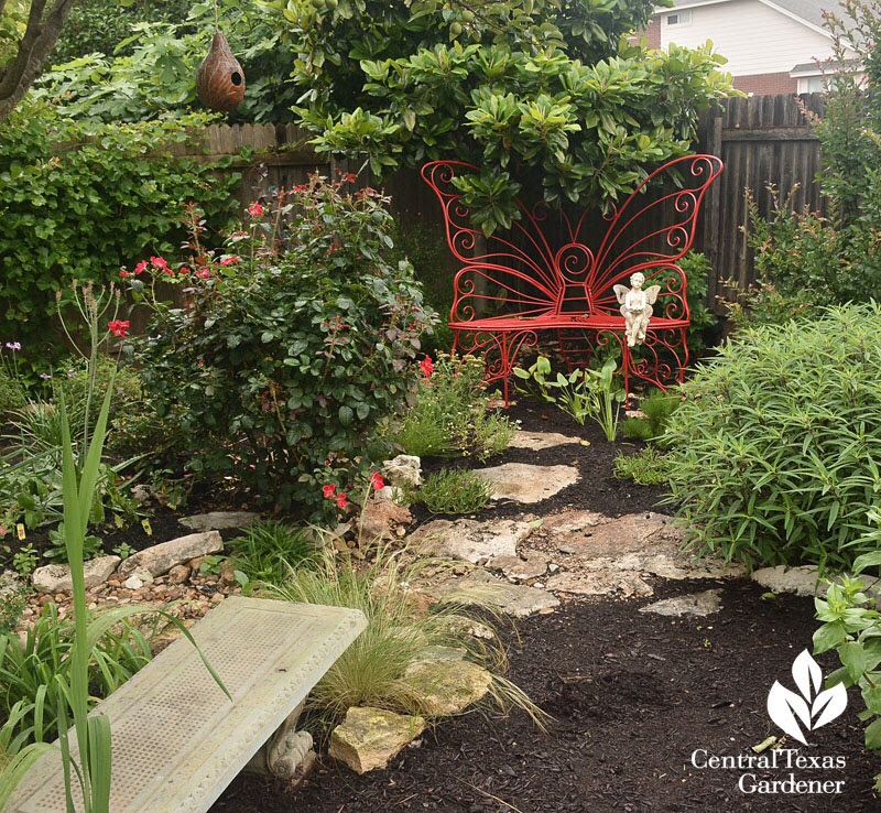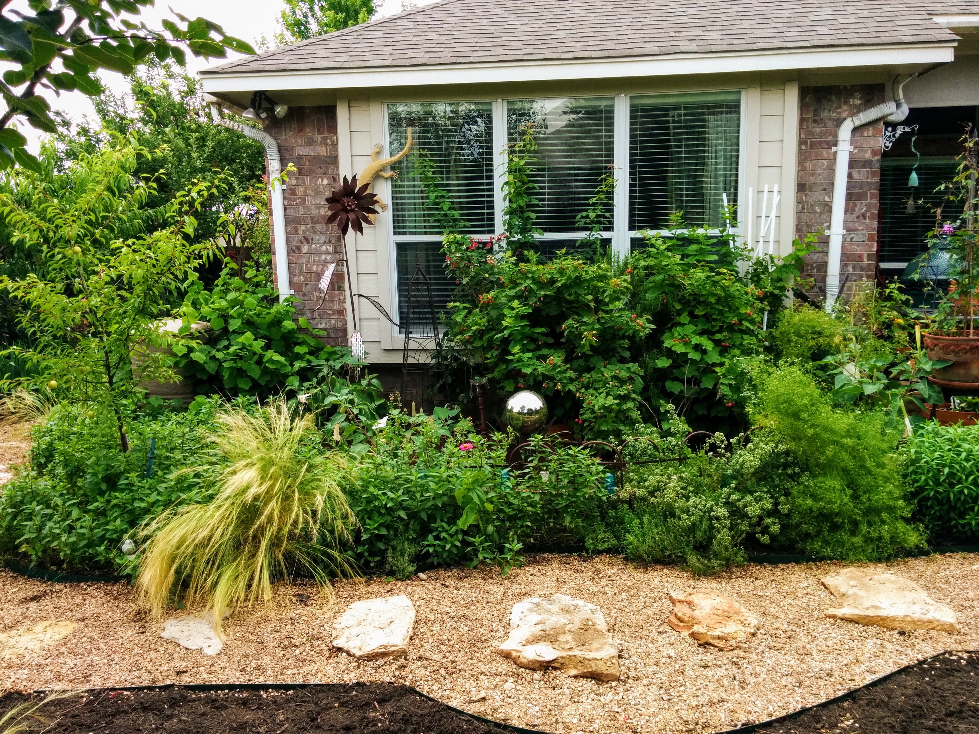 Read and watch videos about low water plant choices, proper planting techniques and organic soil amendments. Then choose your design around your needs. In Central Texas, use native and adapted plants for our hardiness zone 8 a/b and be sure to research the plants that can withstand heat and cold from 110° to 10° and back again. Or, you can just email me and I can help.