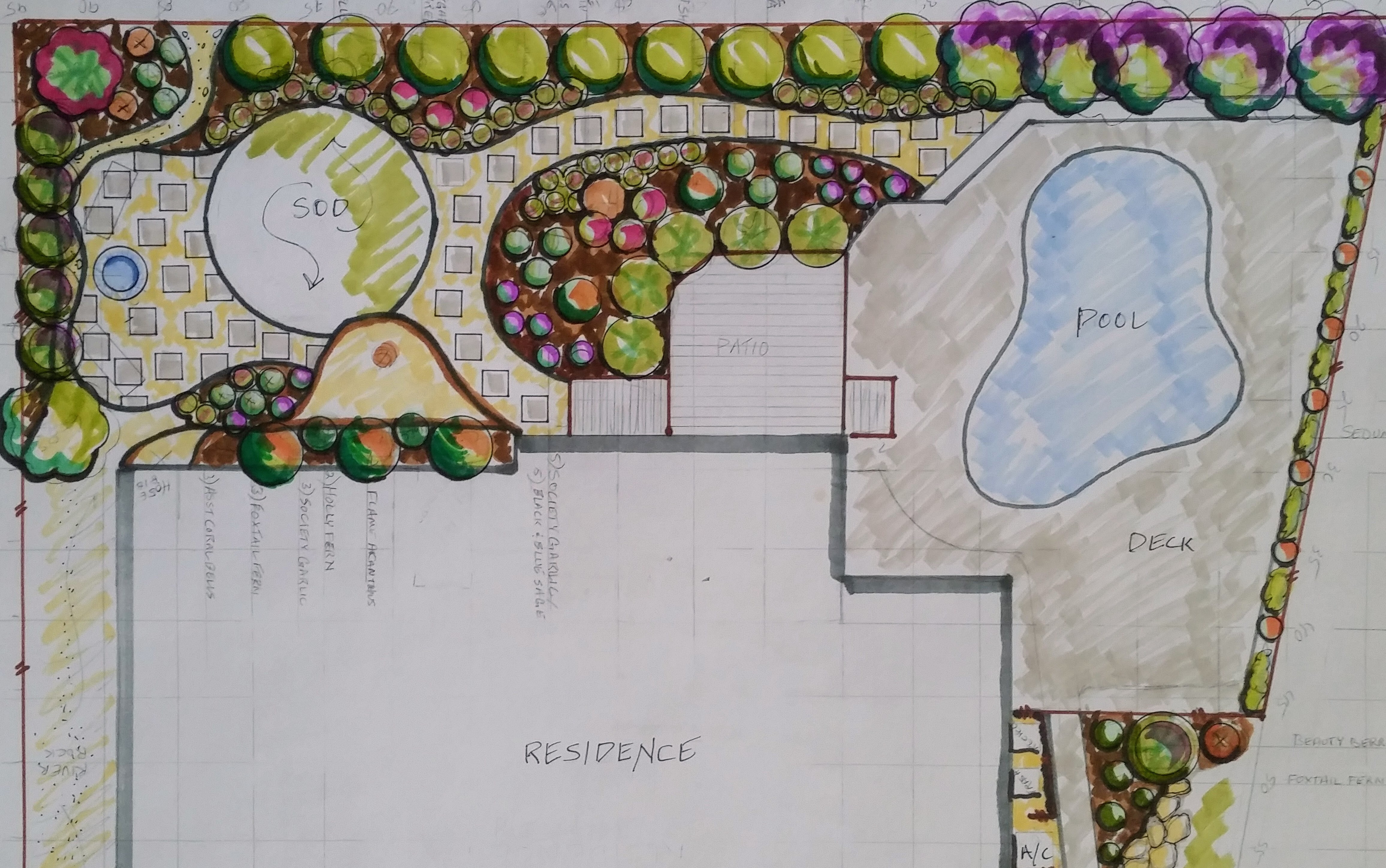Full Landscape Designs include hand drawn designs to scale, a complete plant list for purchasing, general directions and information on on installation and online coaching for life.